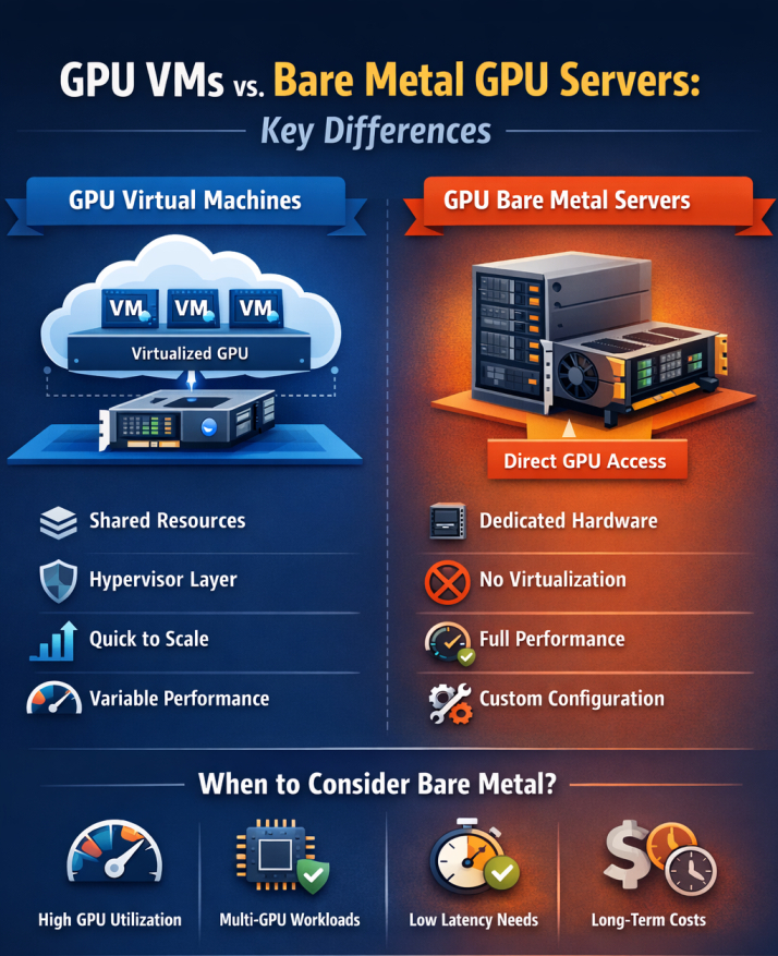 As AI, machine learning, and high-performance computing workloads continue to grow, many teams eventually face a critical infrastructure decision: should we keep running on GPU virtual machines, or is it time to move to GPU bare-metal servers?
