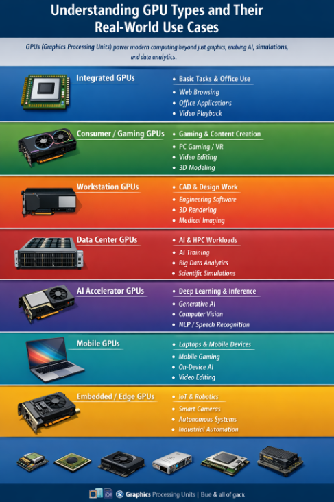 GPUs have evolved far beyond their original role of accelerating graphics. From integrated solutions in entry-level laptops to AI-optimized accelerators powering large-scale data centers, GPUs are now a cornerstone of modern computing. Their parallel processing capabilities enable everything from everyday productivity and gaming to advanced scientific simulations, deep learning, and real-time AI applications. As workloads continue to grow in complexity and data intensity, GPUs remain essential for delivering high performance, efficiency, and scalability across industries, making them indispensable in both personal and enterprise computing.